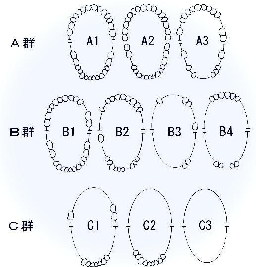この分類からもわかるように、臼歯が失われていくにつれて、噛み合わせの安定性が失われ、「噛み合わせが悪い」状態へと進行していくと考えられます。